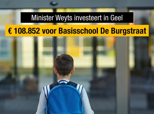 Vlaams minister van Onderwijs Ben Weyts (N-VA) investeert zo via het Agentschap voor Infrastructuur in het Onderwijs (AGION) € 108.852 in Stedelijke Basisschool De Burgstraat in Geel. Het betreft concreet een vergroening van de speelplaats, in het kader van de oproep voor het buitenschools openstellen van schoolinfrastructuur.